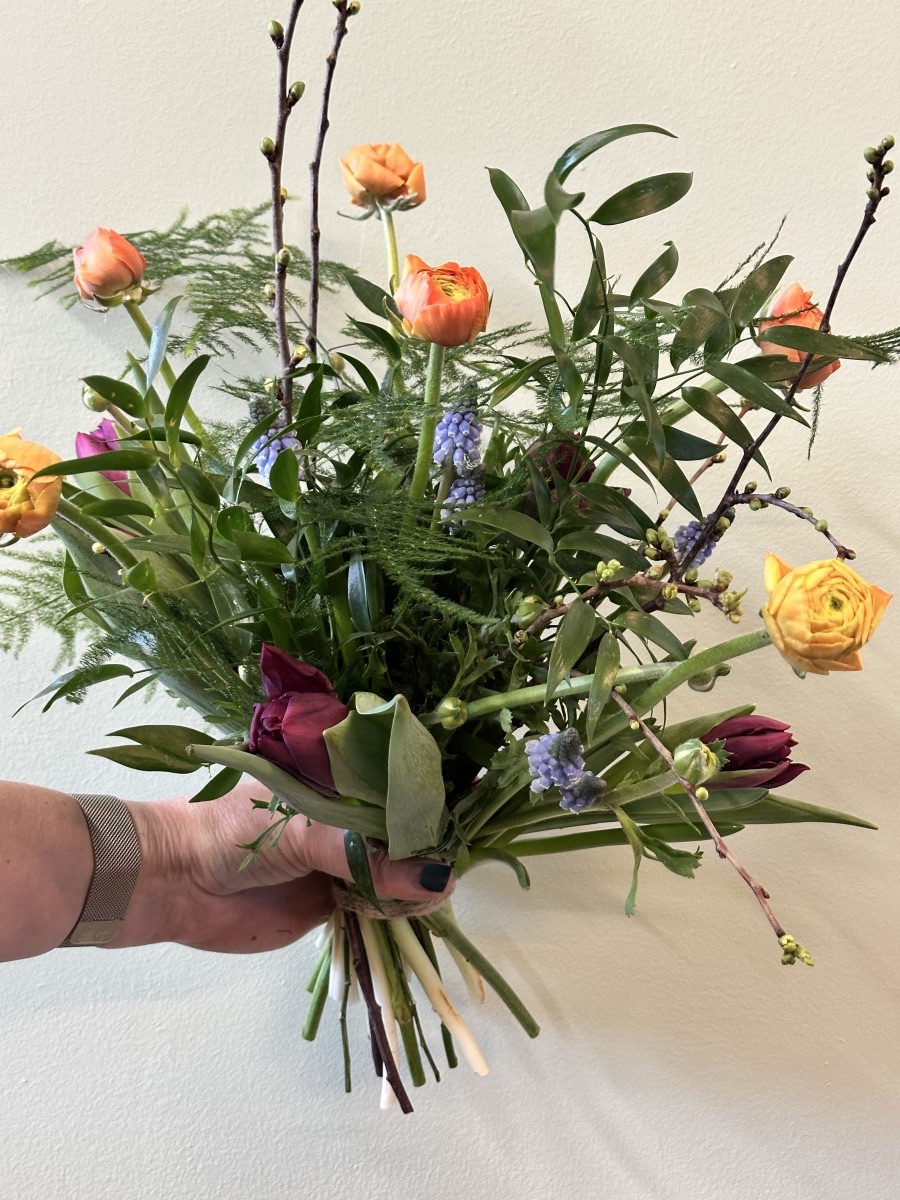 Haal het voorjaar in huis met dit heerlijk geurend lenteboeket met o.a. tulpen, ranonkel en blauwe druifjes